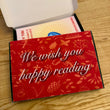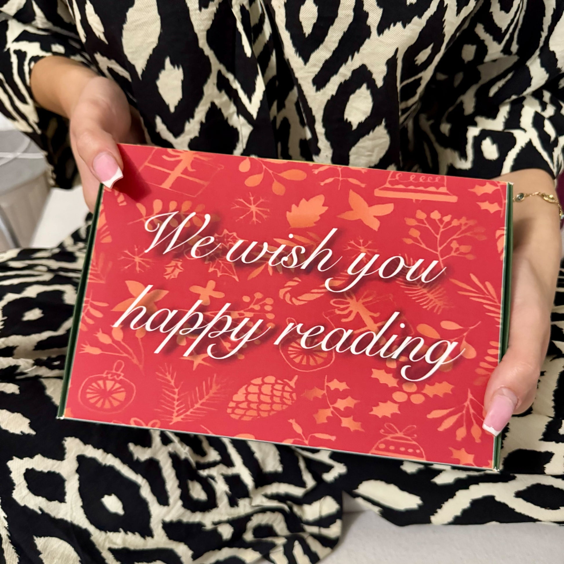 Podarite knjigi praznično čarobnost! Ta čudovito oblikovana praznična škatla z voščilom »We wish you happy reading« je popoln način, da knjigo spremenite v posebno darilo. Naj bo za vaše najdražje ali pa zase – ta škatla vsak trenutek branja spremeni v praznično doživetje. 🎄✨
